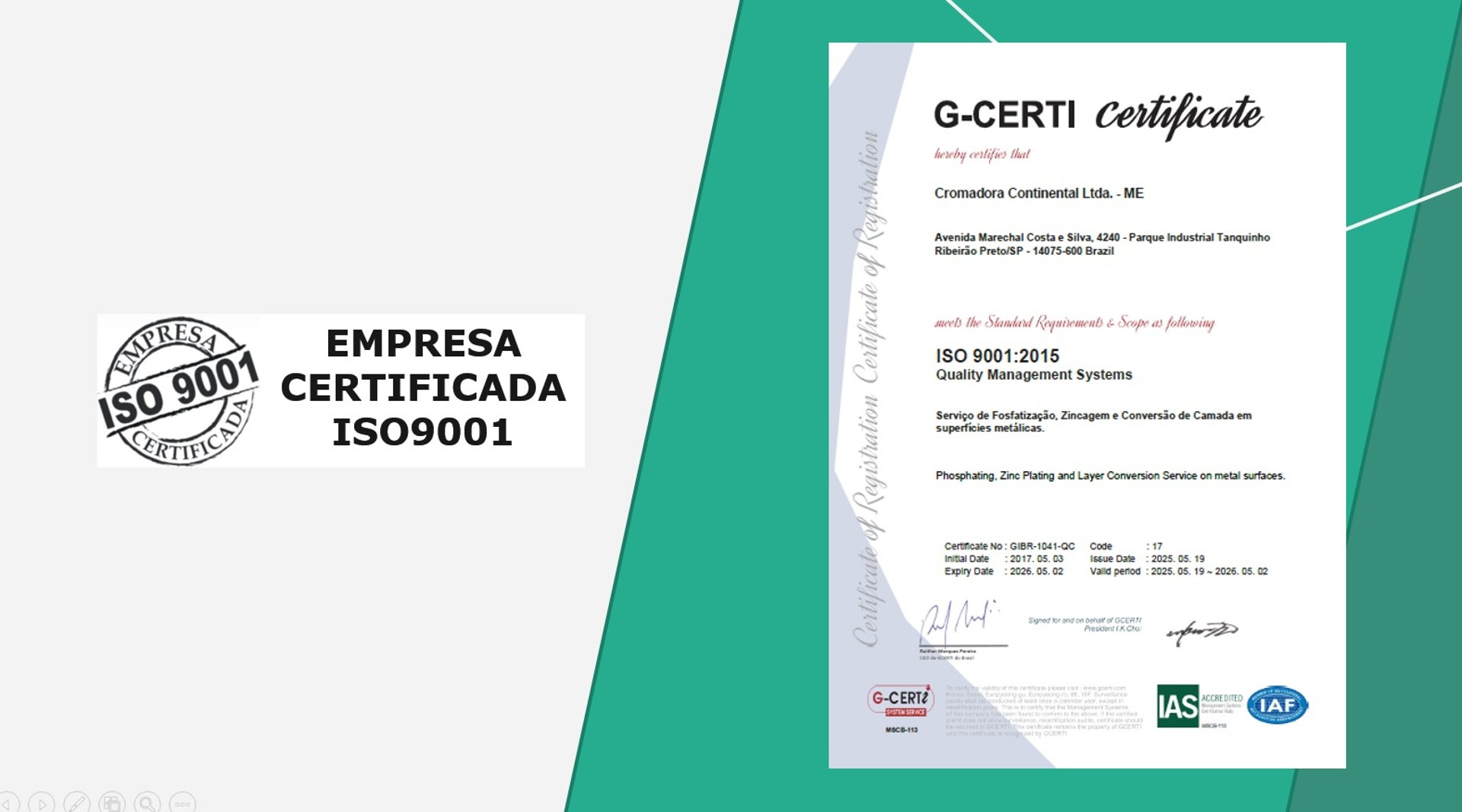 Realizamos tratamentos de superfícies com alto padrão de qualidade, seguindo os requisitos da certificação ISO 9001.